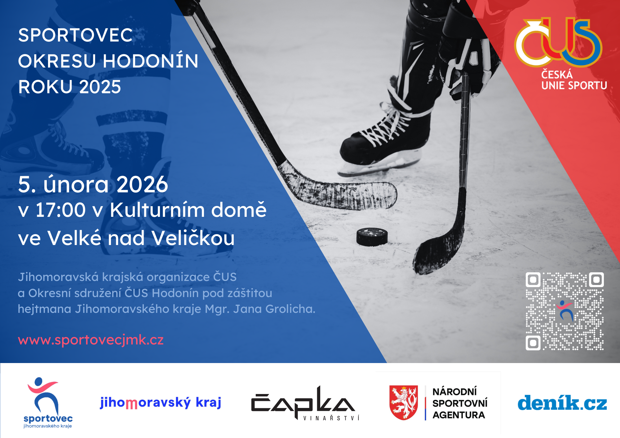 Slavnostní vyhlášení ankety Sportovec roku okresu Hodonín se uskuteční 5.2.2026 v Kulturním domě ve Velké nad Veličkou